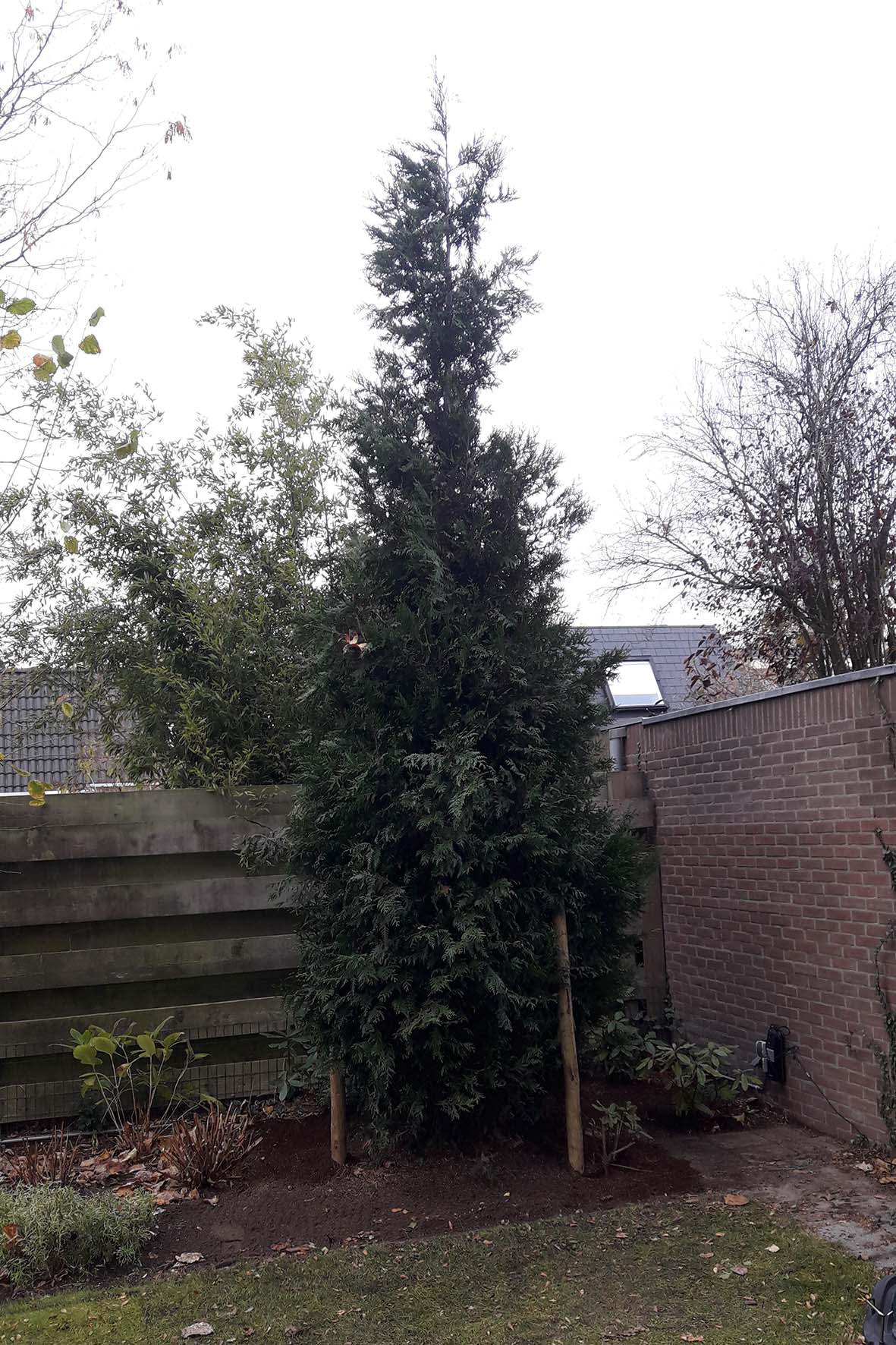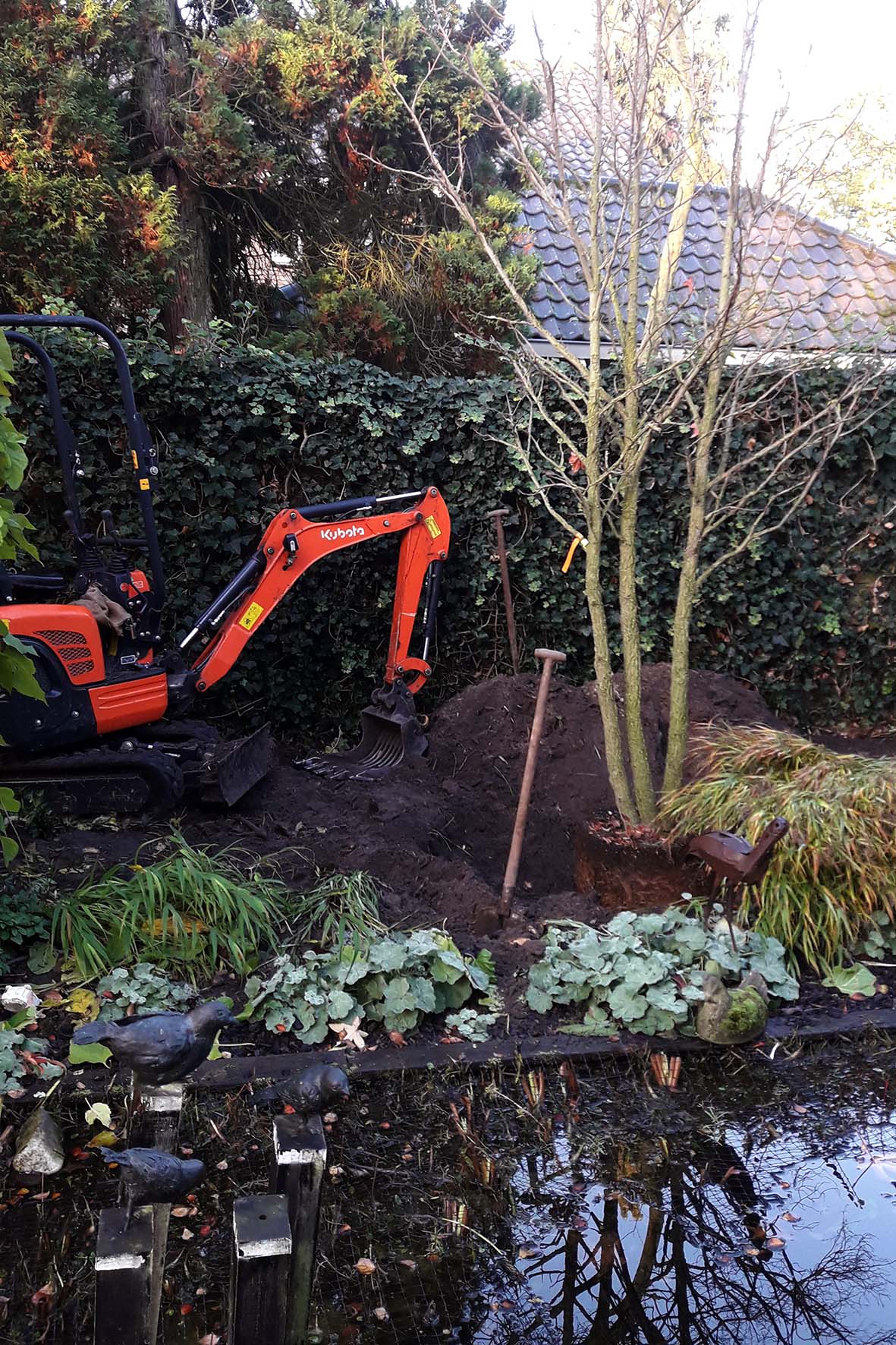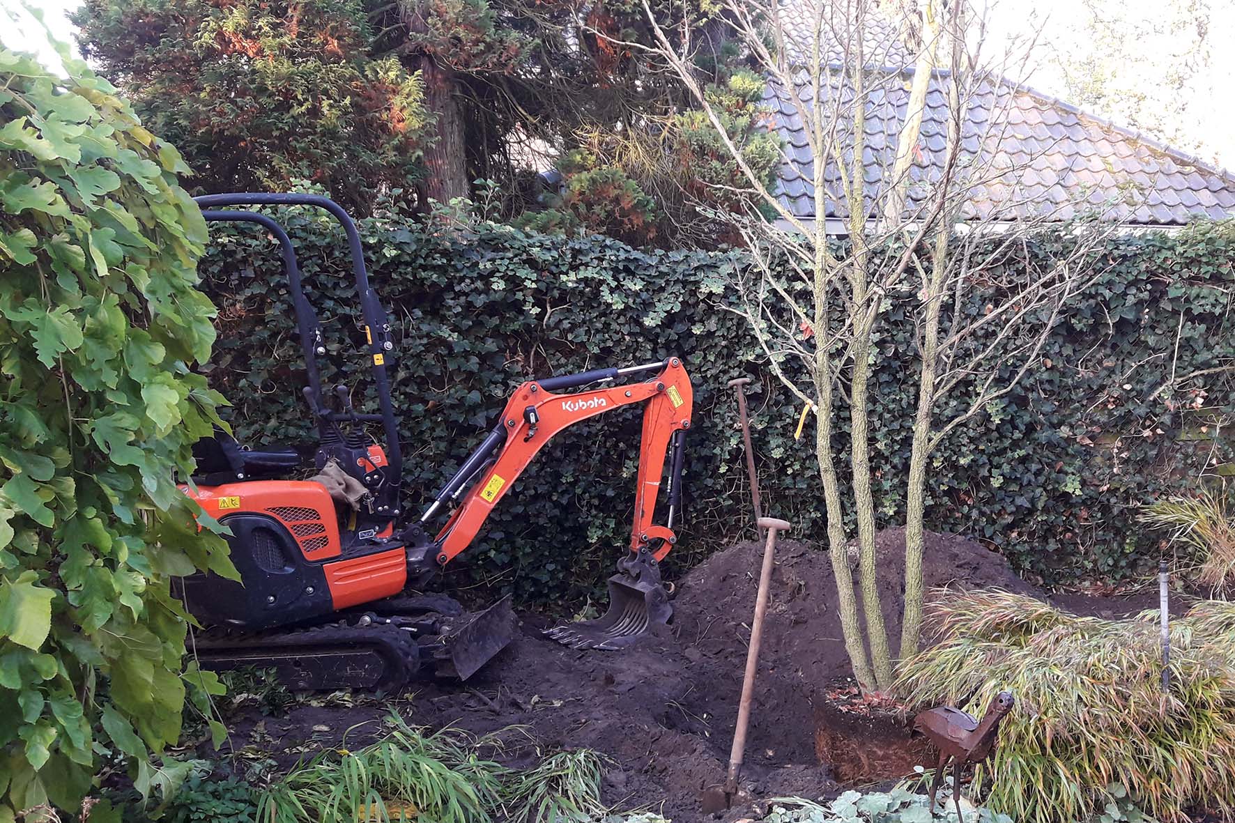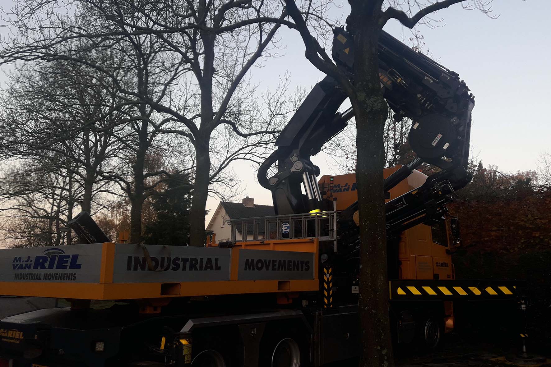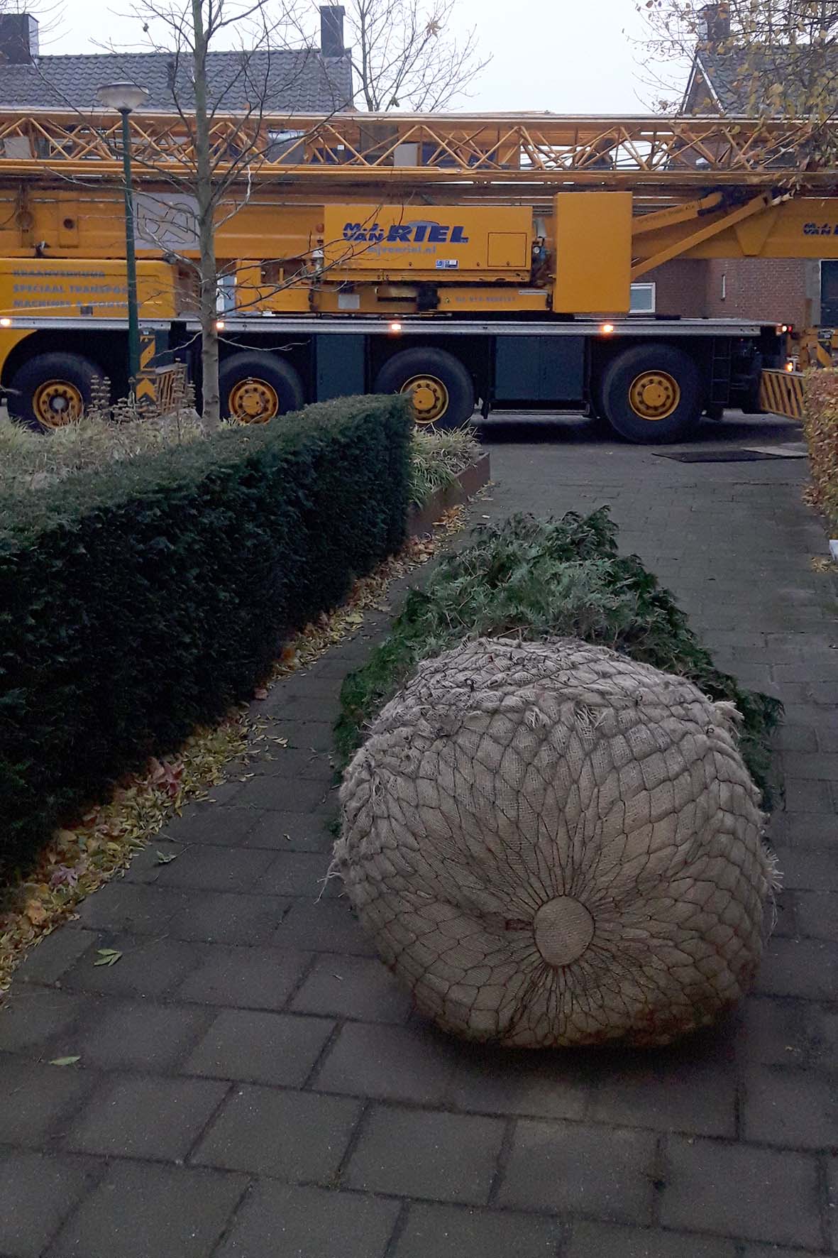 Plaatsen bomen met behulp van een kraan Soms is een boom te zwaar of groot om met de hand te plaatsen. Ook kan een locatie onbereikbaar zijn op een normale manier. Dan is een kraan een uitkomst om een boom toch te kunnen plaatsen: